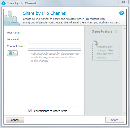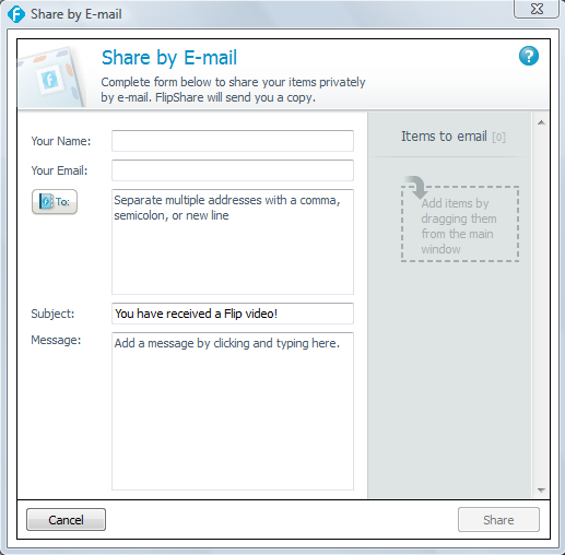 All you have to do is drag your video to the box and follow the prompts on the screen to email your video to your family and friends. You can also have your own flip channel