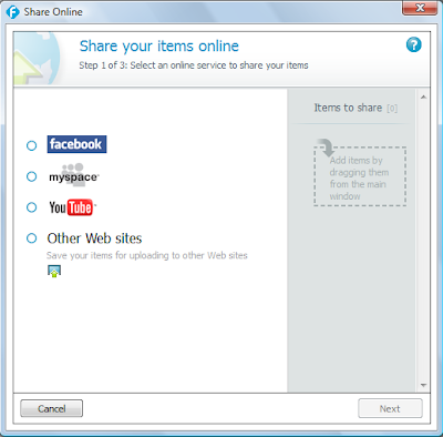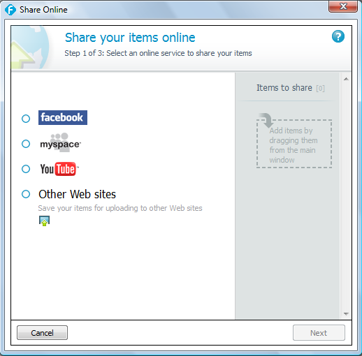 You can also share your videos online on the following web sites below. Just drag the video to the box and follow the prompts. If you choose the option, other web sites it will allow you to export it to a folder on your desktop.